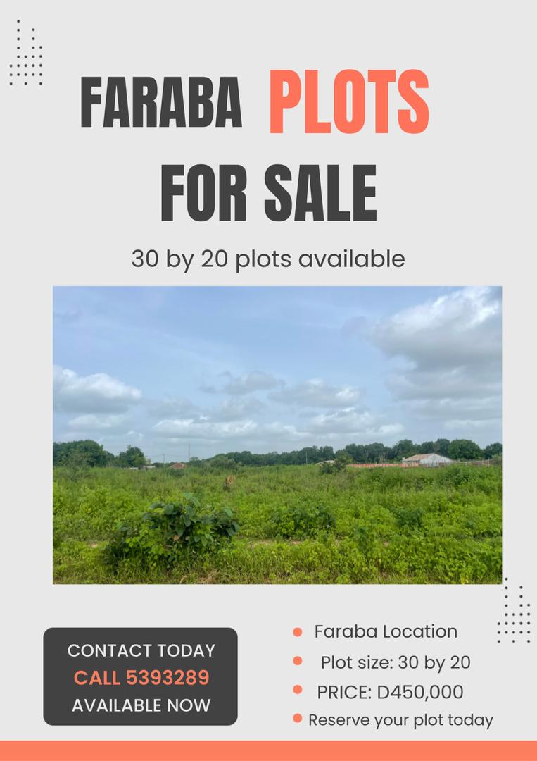 20mx20m plot in the vicinity of the beautiful and blossoming University of the Gambia at Faraba. Faraba is on its…